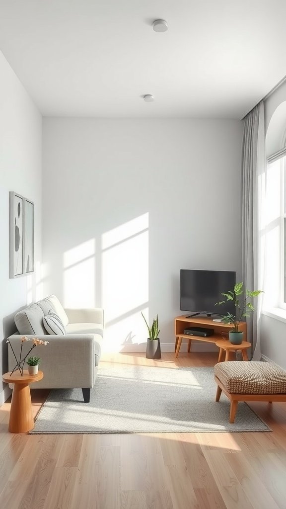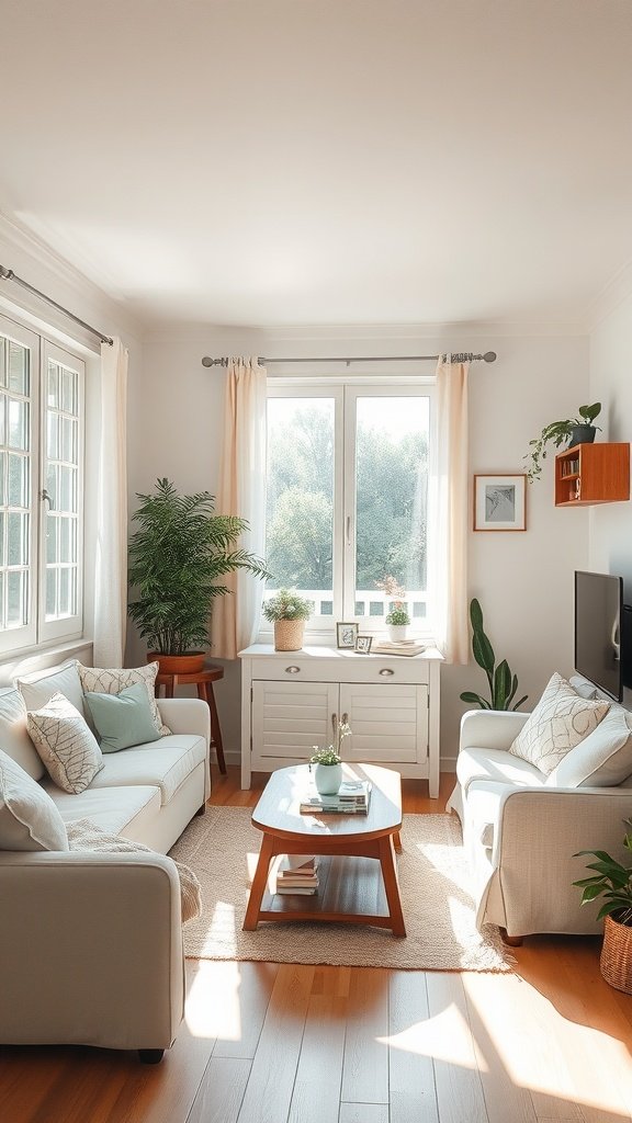 When you have a small living room, keeping it simple is key. Light colors and clean lines make the space feel open and inviting. A few well-chosen plants can add warmth without cluttering up the area.